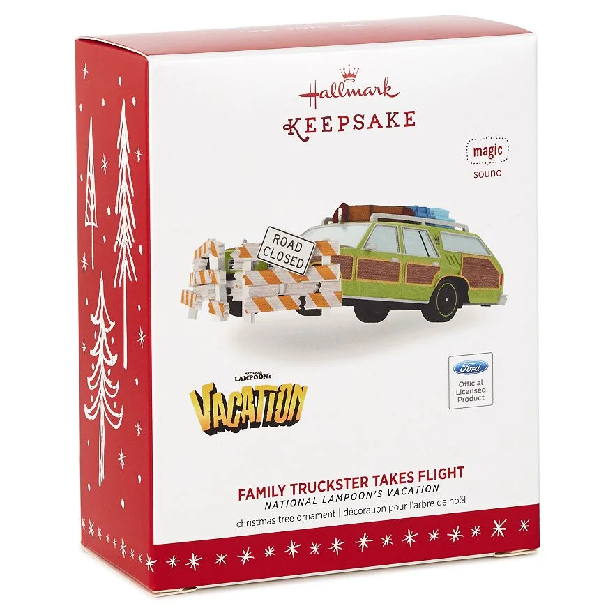 “Every summer Clark Griswold took his family on a little trip. One year, he went too far. Relive the Walley World-bound hilarity of National Lampoon’s Vacation with this Keepsake Ornament, a twisted tribute to the worst family vacation ever. Learn more about Keepsake Ornaments.